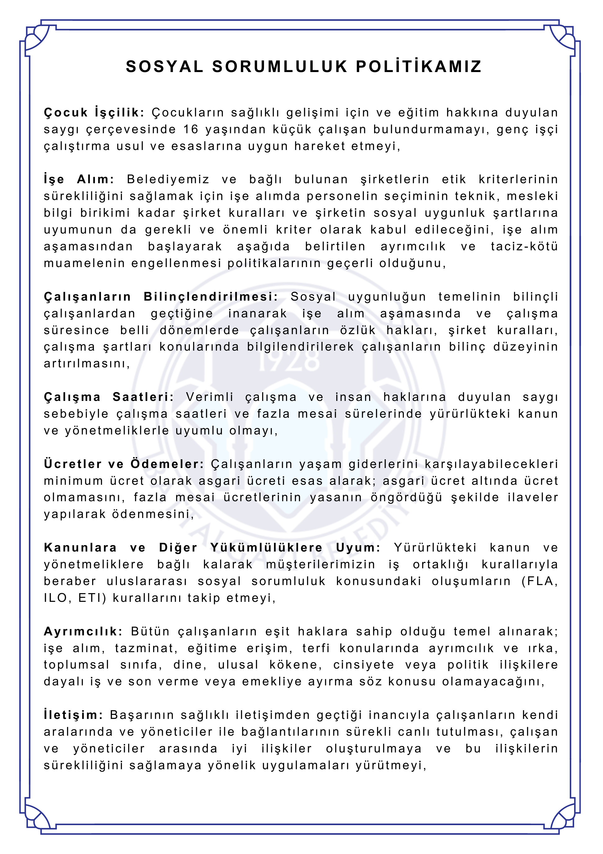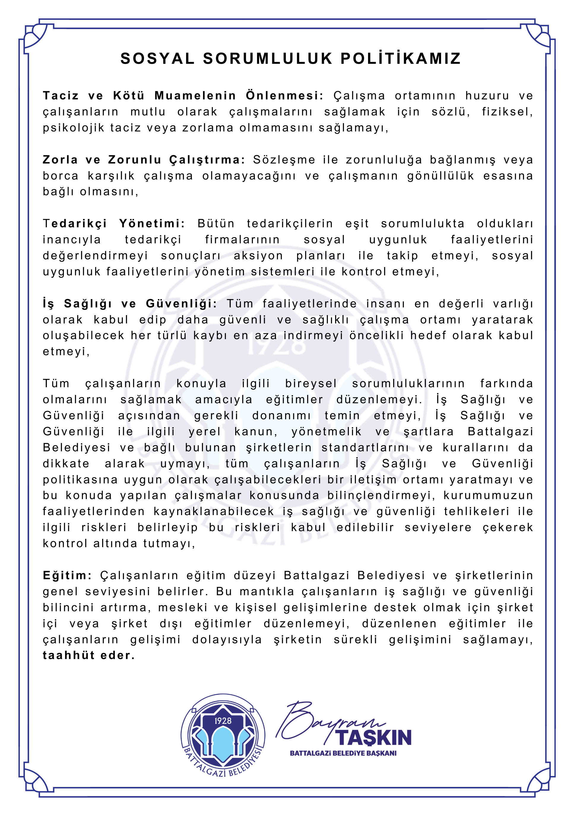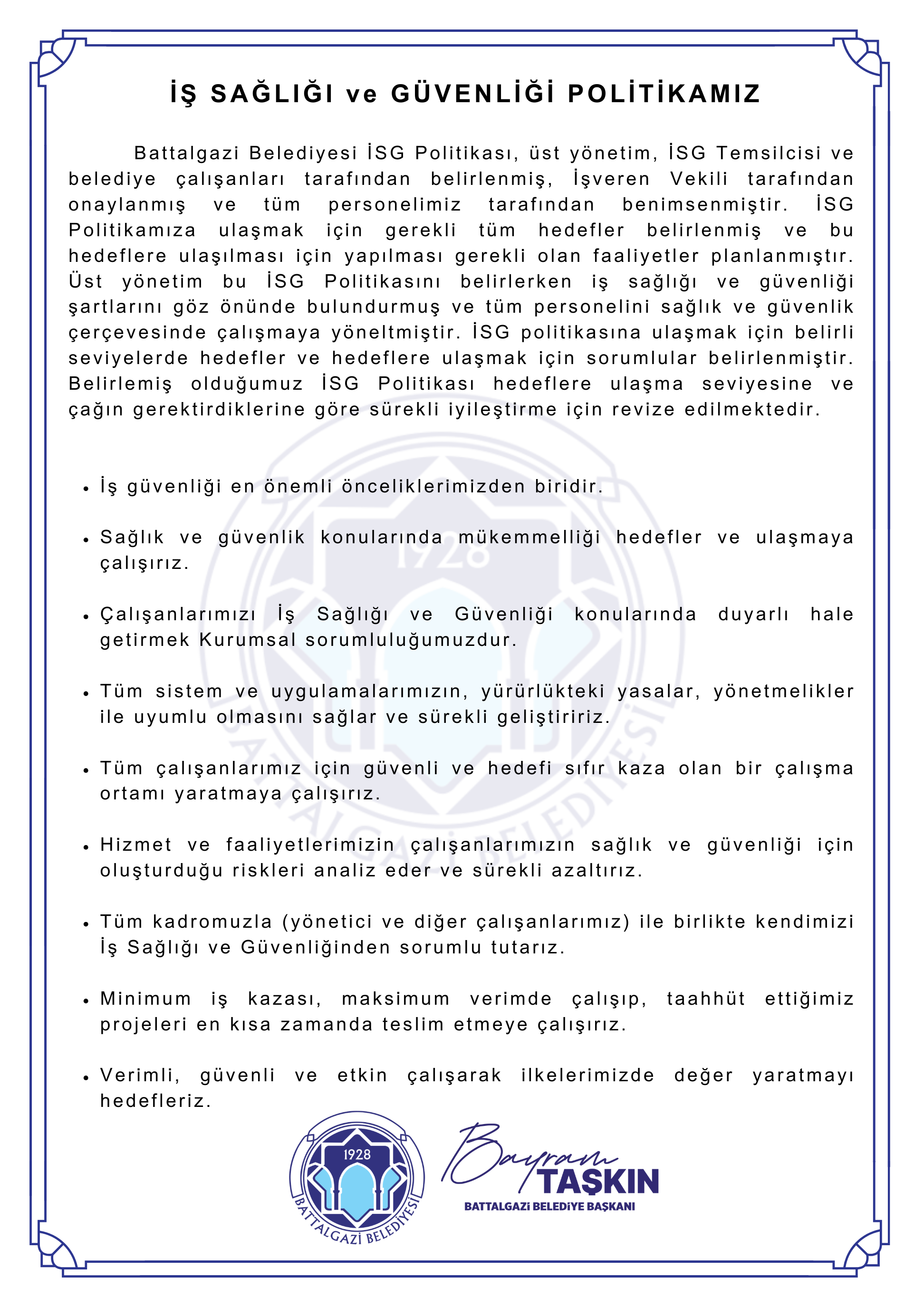 • İş Sağlığı Ve Güvenliği Politikamız